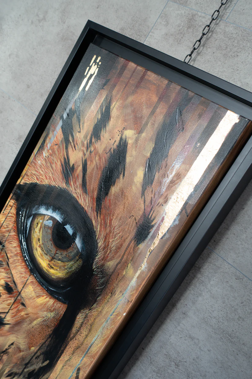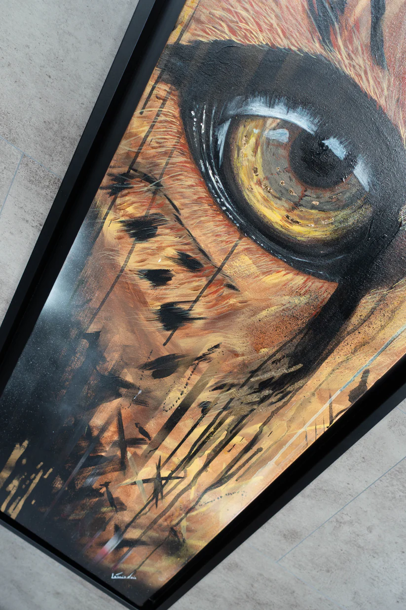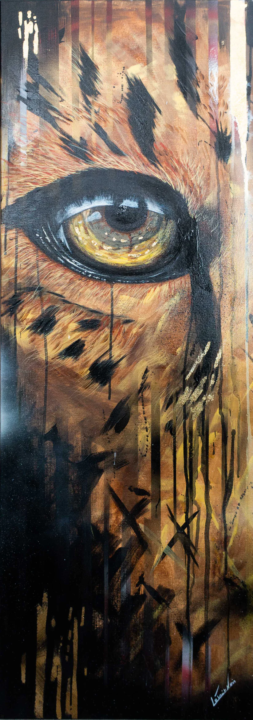 Découvrez un véritable chef-d’œuvre d’art moderne qui vous transporte dans l’intensité captivante du regard d’un léopard, à travers ce tableau moderne et dynamique.